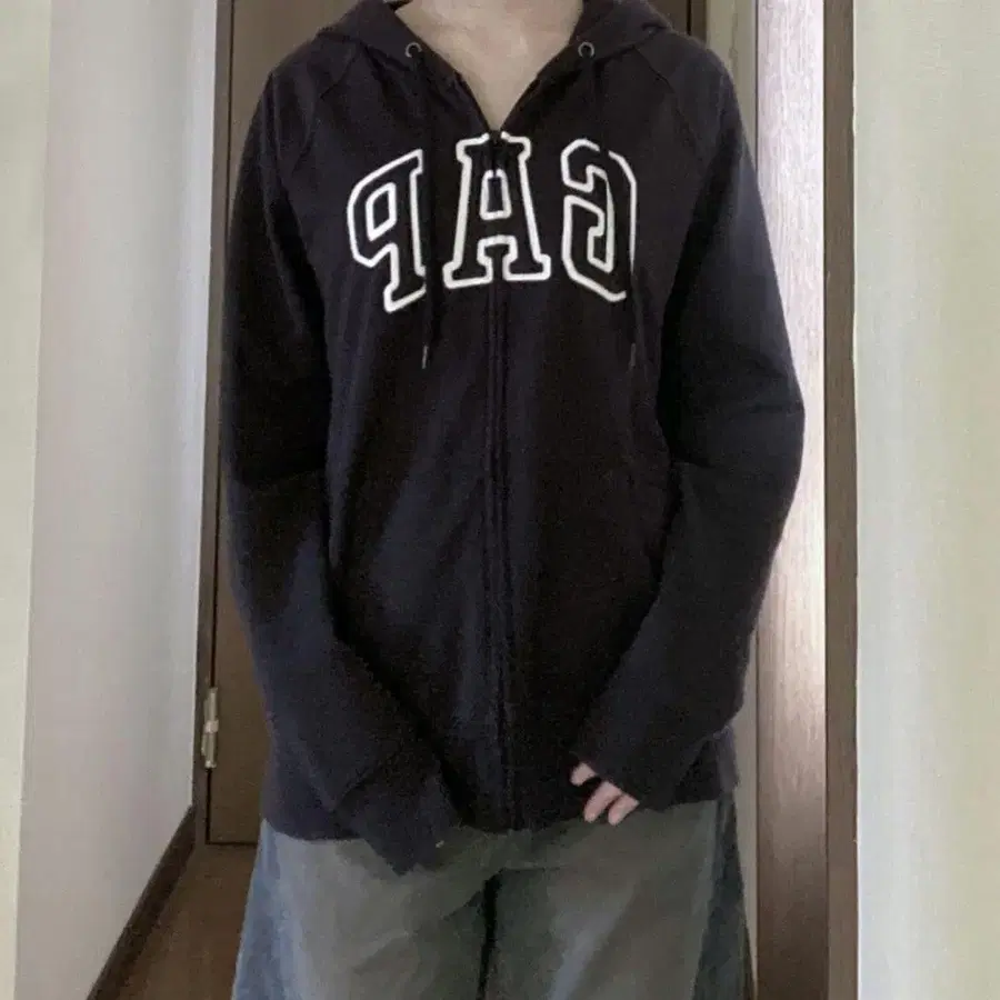 GAP 로고 지퍼 후드티 블랙 그런지