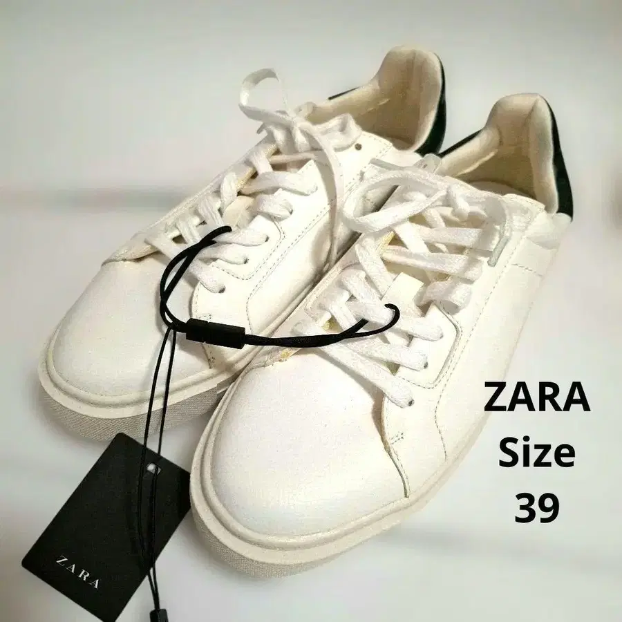 [ 미사용 ] ZARA 화이트/그린 스니커즈 39