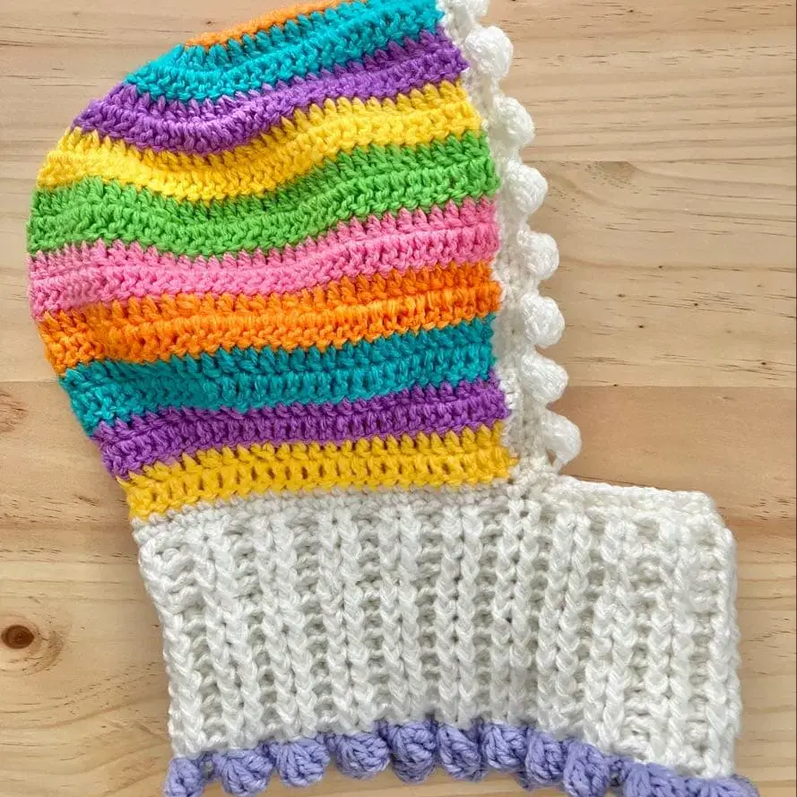 폼폼 후드 발라클라바 손뜨개질 크로셰 컬러풀 니트 모자 보닛 햇