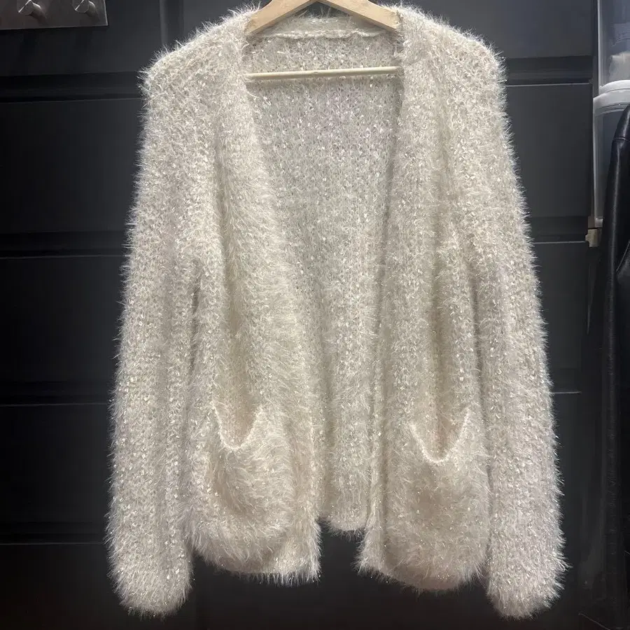 샤기 라메 믹스 퍼 가디건 정가 25000엔