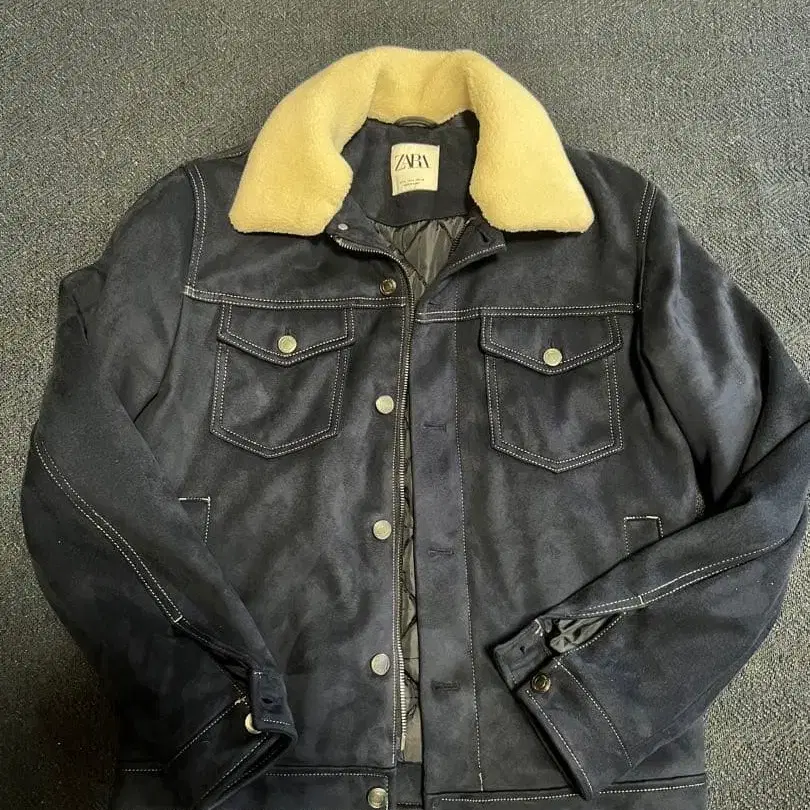 ZARA 네이비 퍼 옷깃 퀼팅 페이크 스웨이드 자켓 S