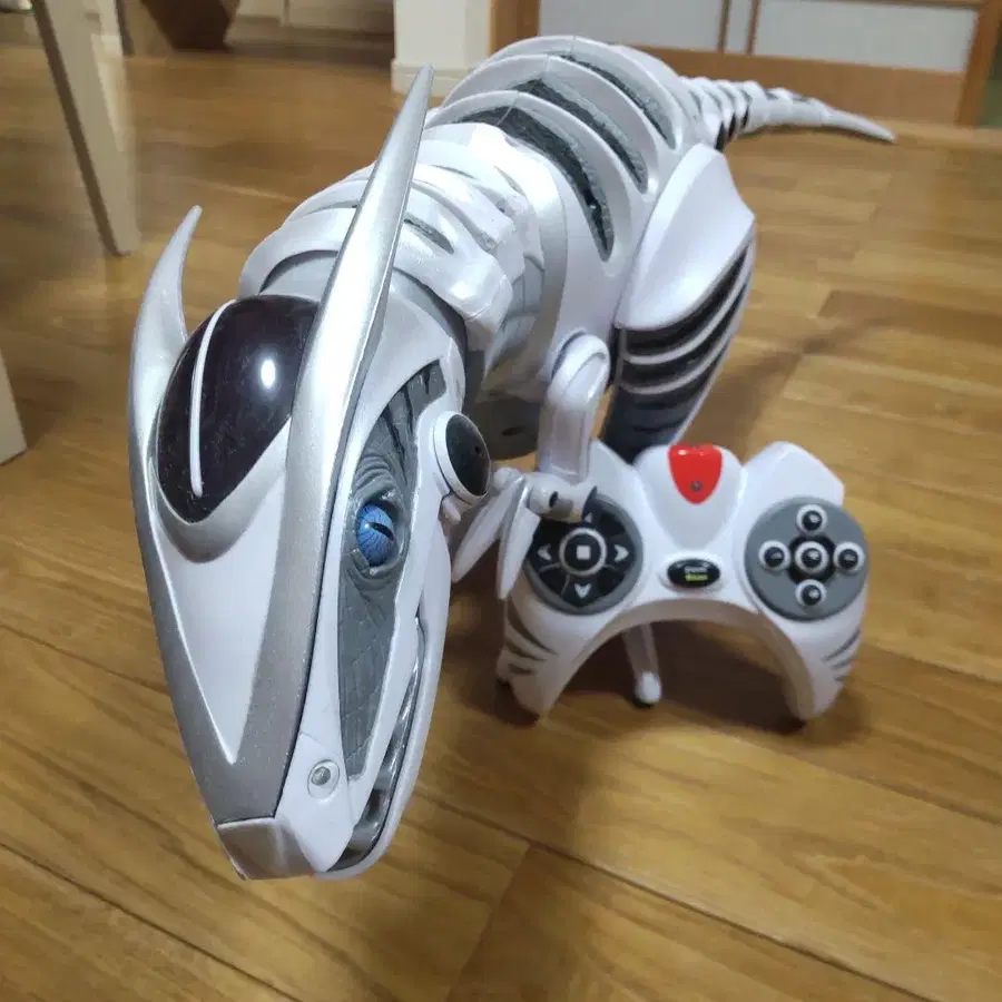 리모트 조작 가능한 화이트 로봇 개, 골격 디자인이 특징. - 모델명: 로봇 개 - 색상: 화이트 - 부속품: 컨트롤러 - 디자인 특징: 골격 디자인 - 기능: 리모트 조작 가능 방문해 주셔서 감사합니다.