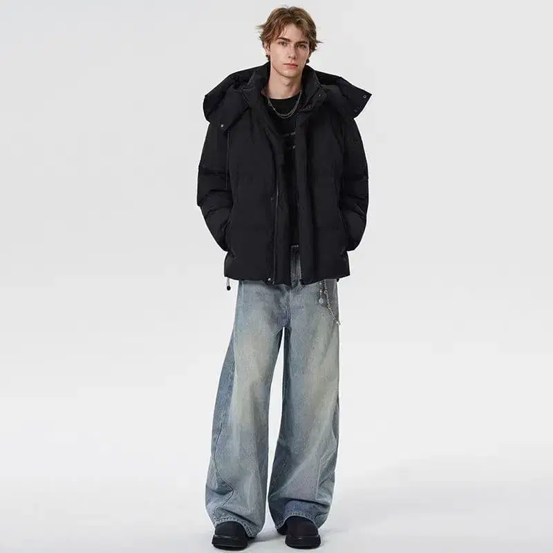 블랙 다운 자켓 후드 부착
