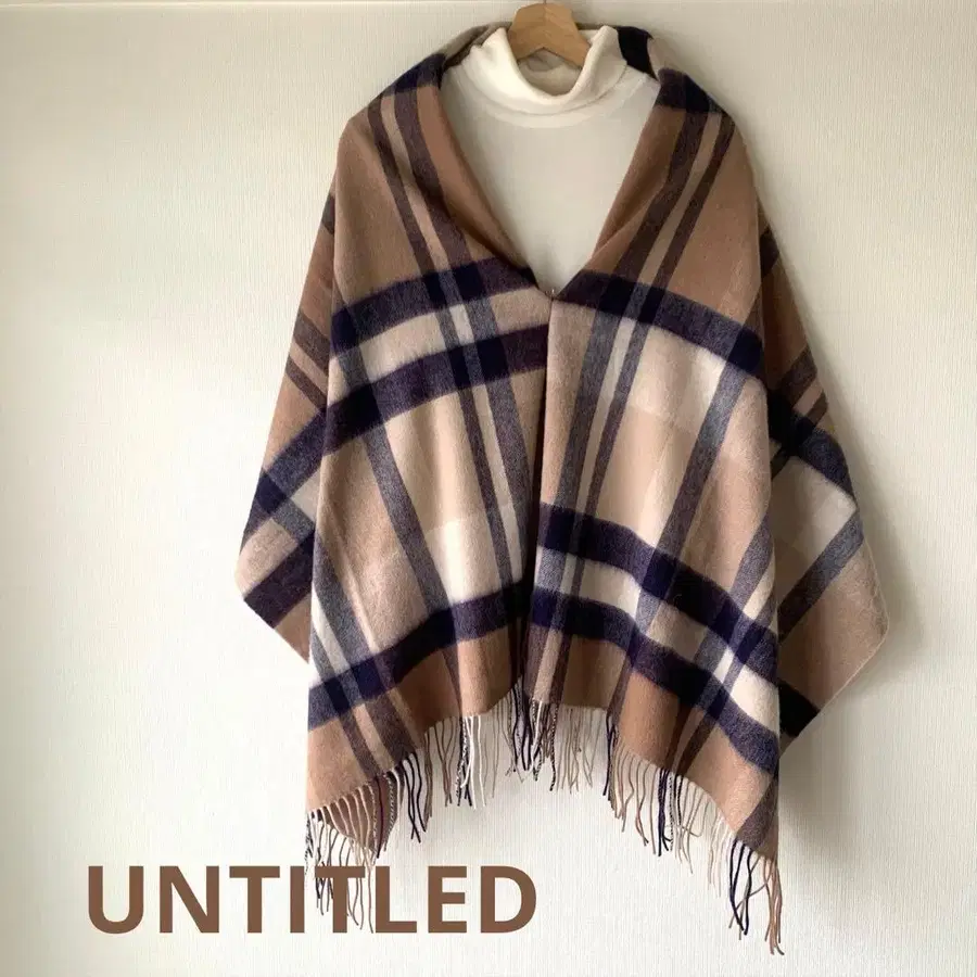 새상품급 UNTITLED [세탁 가능] 울 체크 스톨 모 100% 브라운