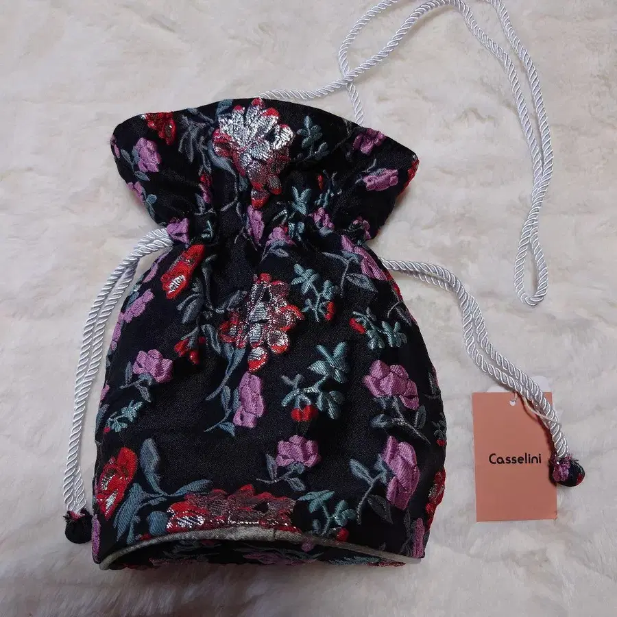 Cassini 꽃무늬 복조리형 백 복조리형 숄더백 블랙 베이스에 꽃무늬