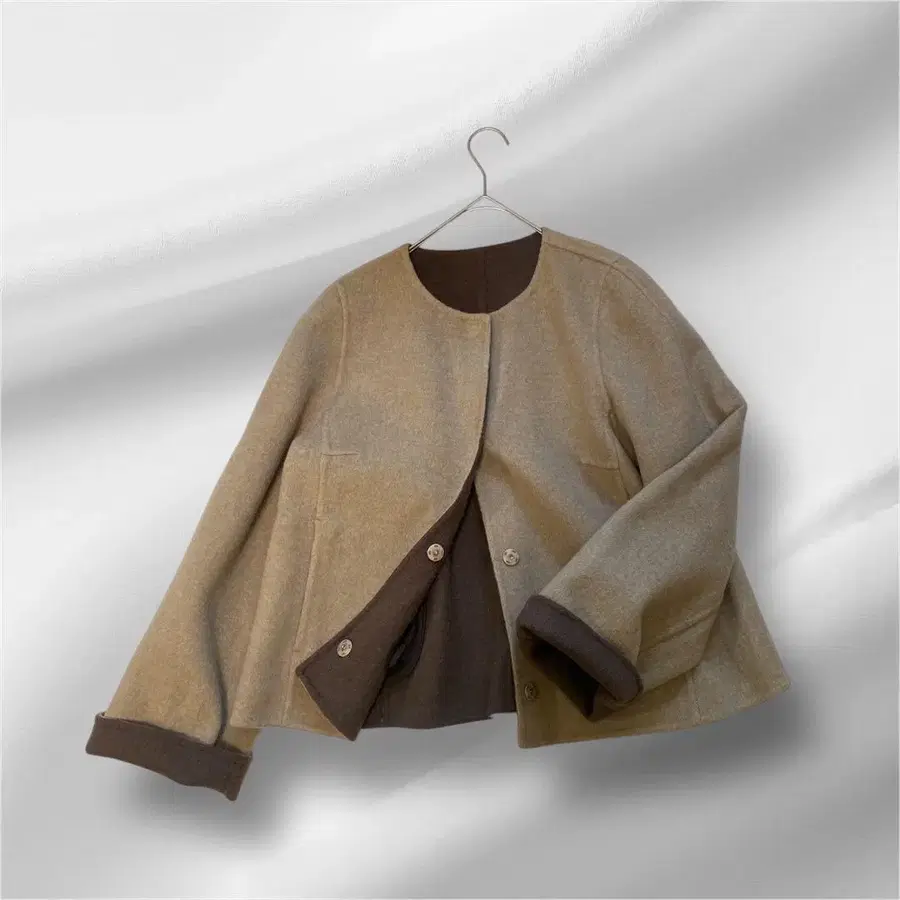빅 사이즈! TO BE CHIC/더블 페이스/노카라 숏코트 42