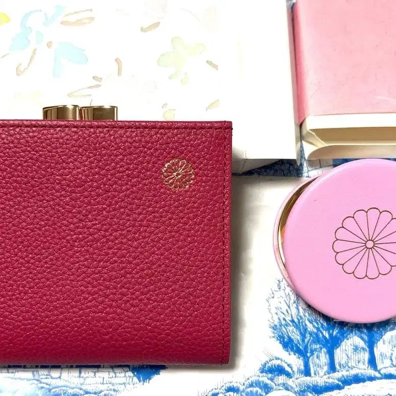 황궁 한정판 지갑 컴팩트 거울 핑크 동어원 본마루 매점 천연 가죽