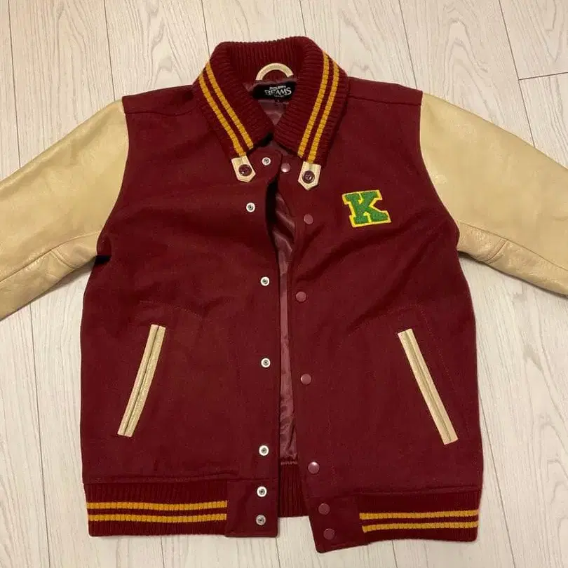L 사이즈 빔즈 천연 가죽 절개 바시티 자켓 소가죽 돈키 넥 와펜