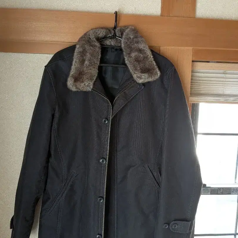 다케오 키쿠치 퍼 카라 부착 블랙 코트