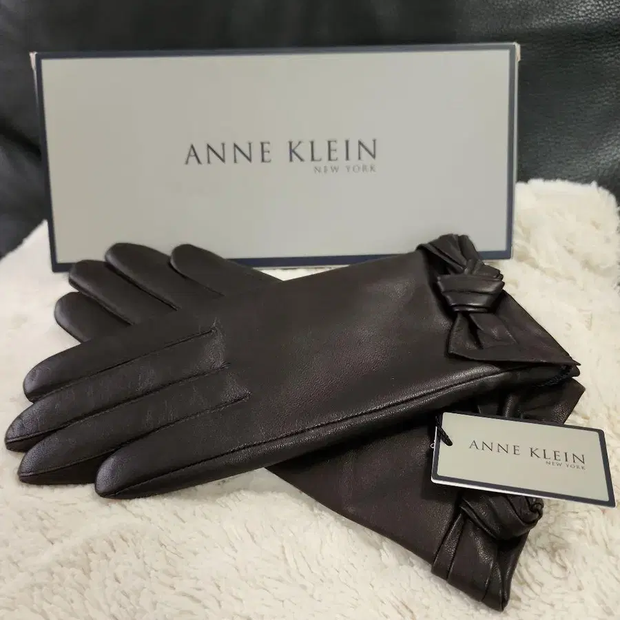 고급 가죽 장갑 보아 안감 ANNE KLEIN 블랙 23cm 박스 포함