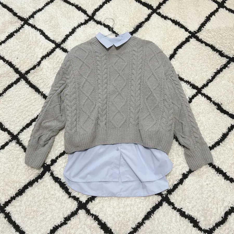 SM2 케이블 니트 셔츠 레이어드 코디 그레이 스카이블루 사만사 모스모스
