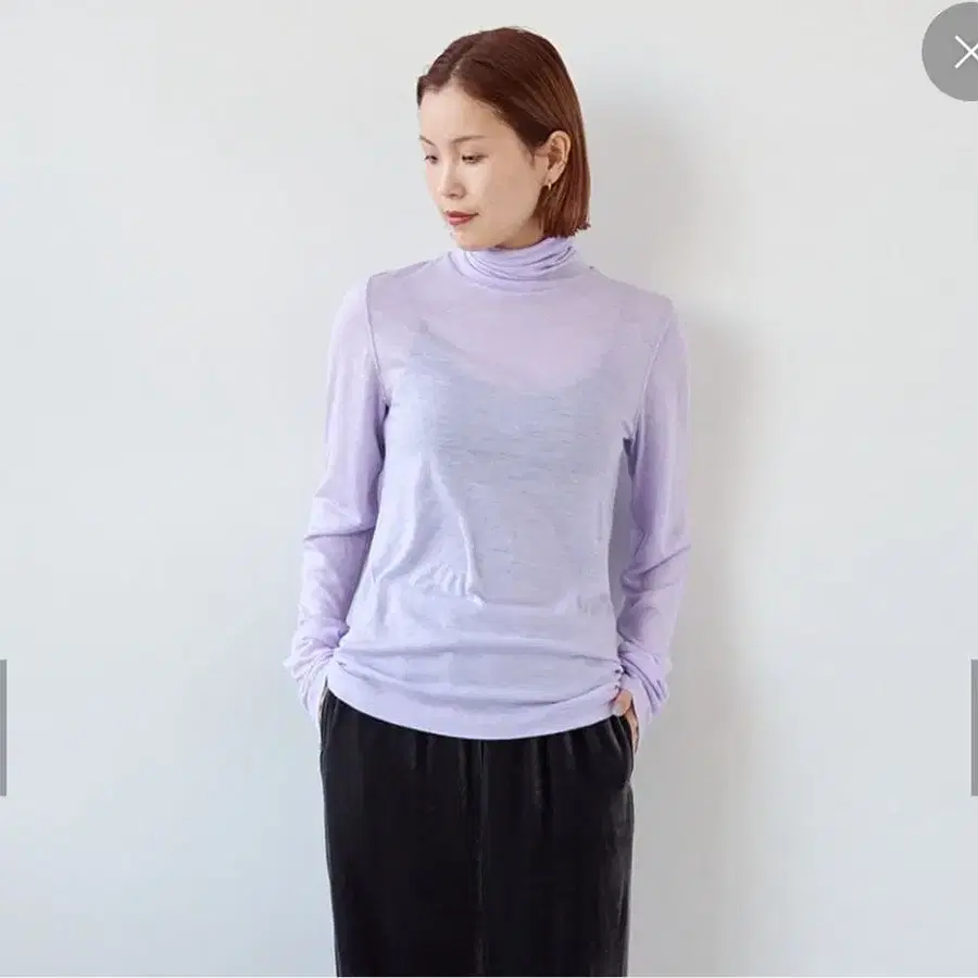 EMILY WEEK (에밀리 위크) 슈퍼 울 터틀넥 시어 풀오버 ※ 마음에 들어 구매했지만, 2~3회 시착 후에도 어울리지 않아 판매합니다. 택은 떼어서 없습니다. 보관 중 생긴 주름 때문에 다리미질을 했으나 완벽하지 않으니 양해 부탁드립니다. ◯ 색상 퍼플 ◯ 사이즈 프리 사이즈 ------------------------ 최고급 울 100%를 사용한, 부드럽고 매끄러운 촉감의 터틀넥 풀오버입니다. 울 특유의 뛰어난 보온성과 코다와리(고집)한 착용감으로 민감성 피부인 분들에게도 추천하는 아이템입니다. 심플하면서도 세련된 디자인으로, 단품 착용부터 레이어드까지 폭넓게 활용 가능합니다. [ 소재 특징 ] 매우 가는 실을 사용했기 때문에 울 특유의 까슬거림이 없고, 부드럽고 유연한 터치가 특징입니다. 가벼운 착용감으로 일교차가 있는 계절부터 겨울까지 쾌적하게 착용할 수 있습니다. 매끄러운 촉감으로 착용감이 좋으며, 적당한 광택감과 시어한 느낌이 여성스러움을 연출합니다. 홈 케어도 가능한, 돌려입기 좋은 아이템입니다. [ 디자인 ] 신체의 라인을 드러내지 않고, 단품으로도 입기 좋은 편안한 실루엣입니다. 매끄럽고 드레이프성이 있는 원단이라 터틀 부분도 자연스러운 느낌으로 연출됩니다. 슬리브는 약간 길기 때문에 다른 색상을 겹쳐 레이어드 스타일을 즐기는 것도 추천합니다. 겹쳐 입어도 부피감이 없고, 환절기부터 추운 시기까지 유용하게 사용할 수 있습니다. ********************** 비침: 있음 안감: 없음 신축성: 있음 광택감: 없음 원단 두께: 얇음 **********************
