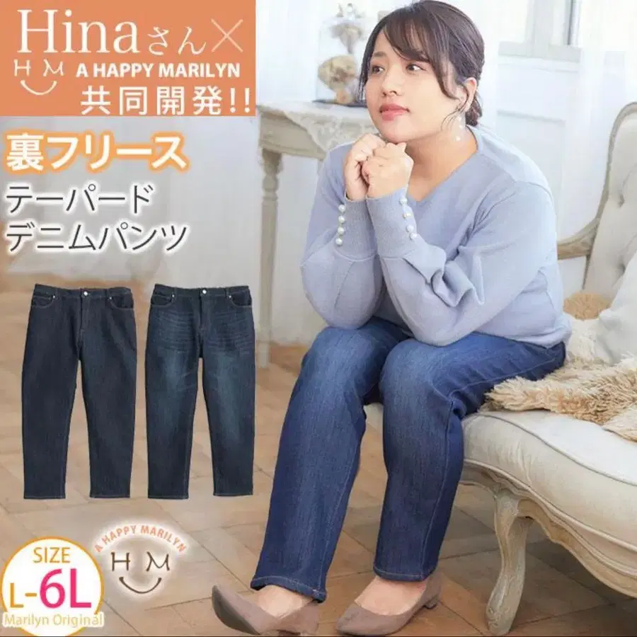 아 해피 마릴린 데님 팬츠 5L hina 콜라보 안감 플리스 빅 사이즈