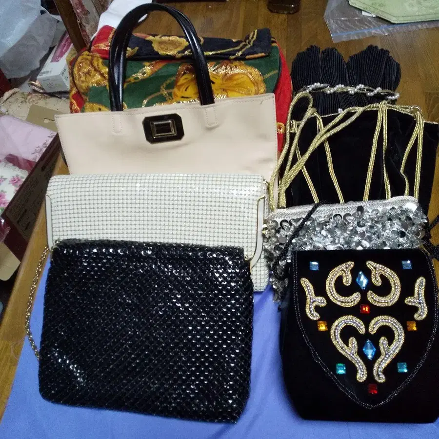 핸드백 8종 세트, 다양한 색상, 체크 무늬, 비즈 장식