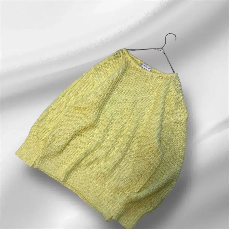 빅 사이즈 INED 울 블렌드 니트 컬러 니트 레몬 컬러 워셔블