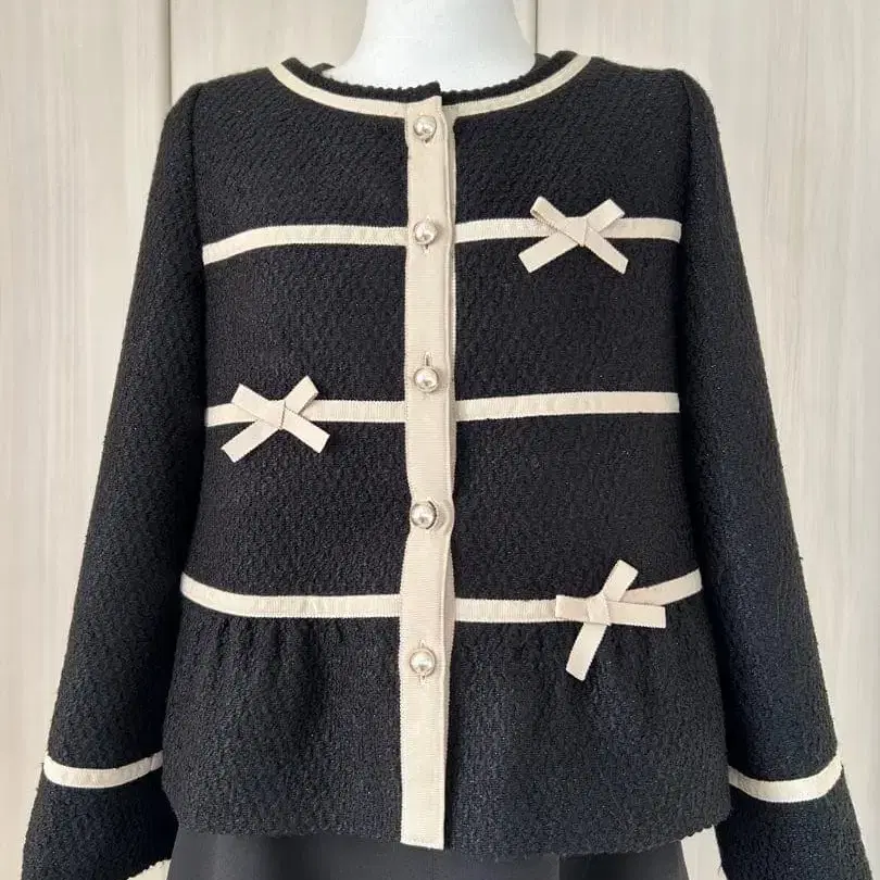 유니버셜 뮤즈 그로그랭 리본 포함 노카라 자켓