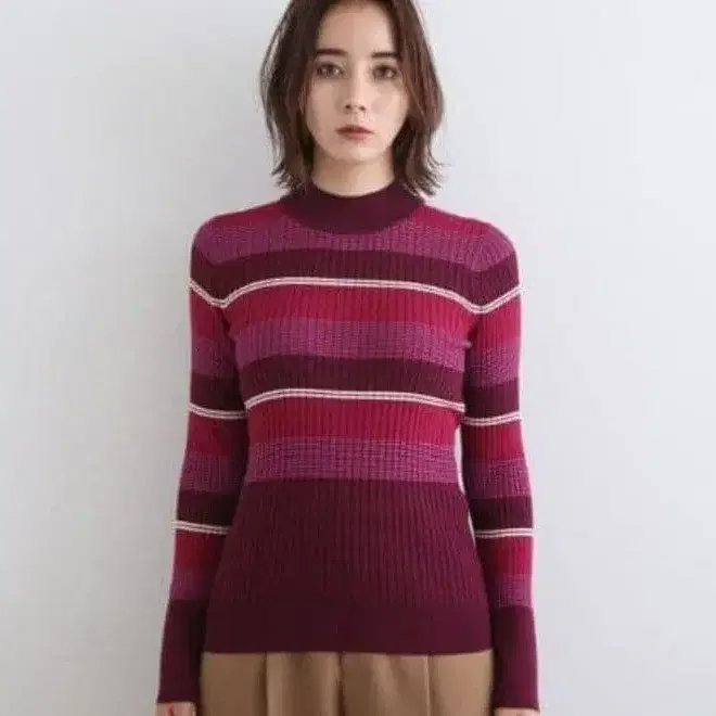 INDIVI [세탁 가능] 멀티 보더 하이넥 니트