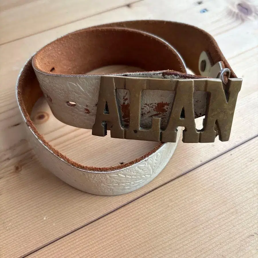 HTC 가죽 벨트 스터드 벨트 크림색 30인치 엠보