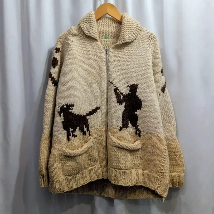 빈티지 야생 조류 개 사냥 숄카라 카우친 스웨터
