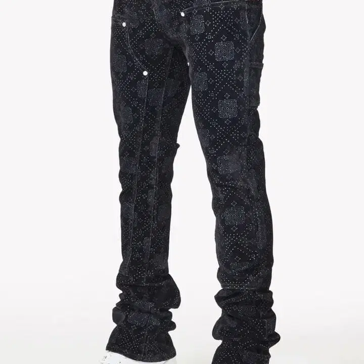 블랙 패턴 데님 팬츠