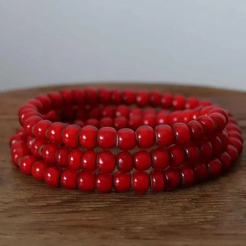 화이트하트 올드 비즈 앤티크 비즈 8mm 정도 한 줄 짙은 빨간색