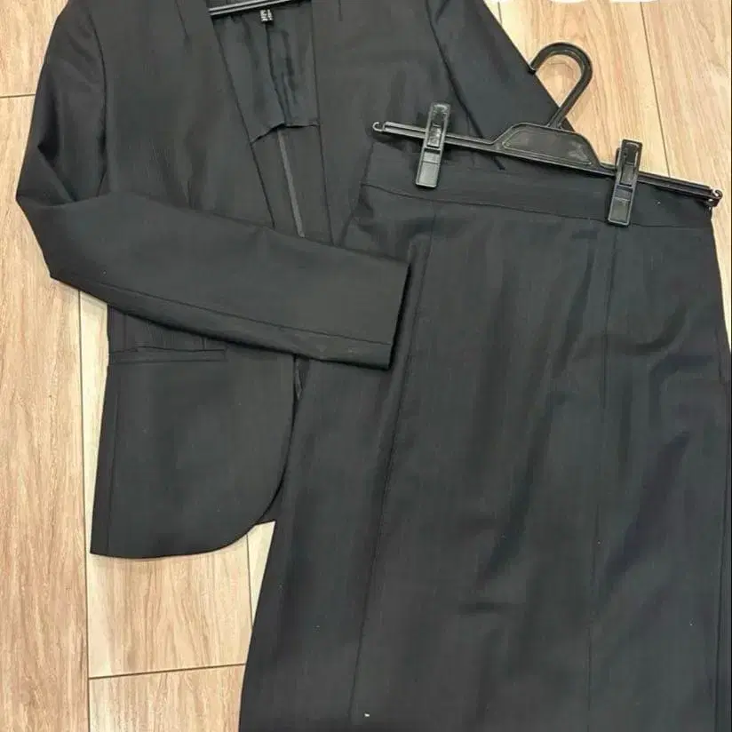 ICB 네이비 스트라이프 노카라 수트 자켓 스커트 5호