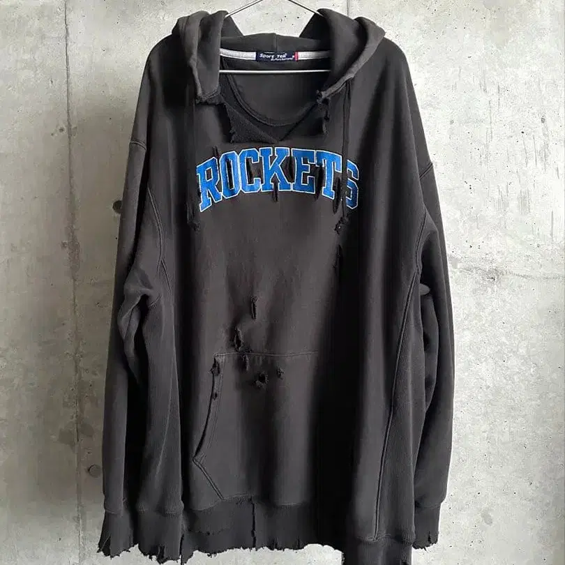 ROCKETS 데미지 가공 후드티 블랙 보로 맨투맨