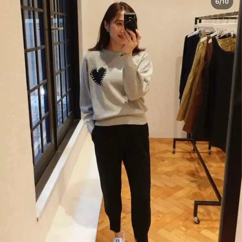 실루엣에 신경 쓴 니트 팬츠는