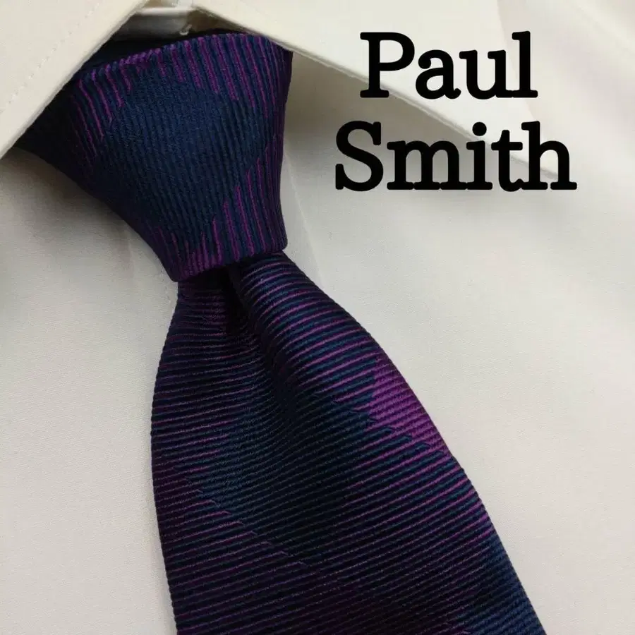 폴스미스 고급 실크 넥타이 체크 무늬 퍼플