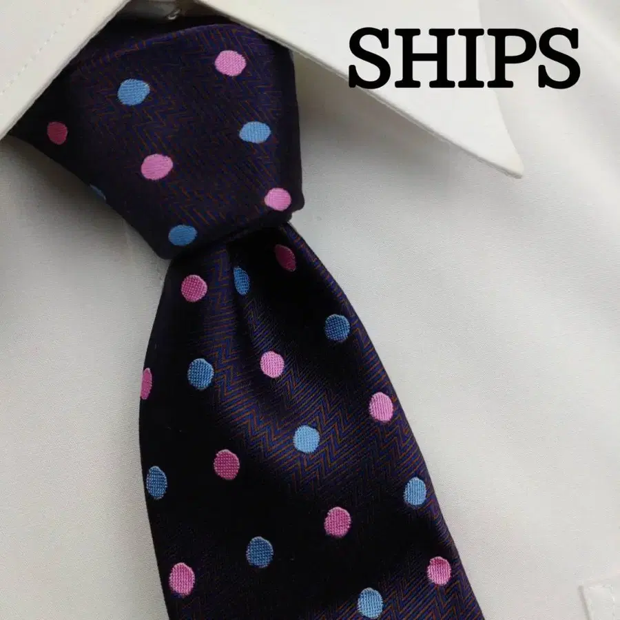 SHIPS, 네이비 도트 실크 넥타이, 미사용 새상품