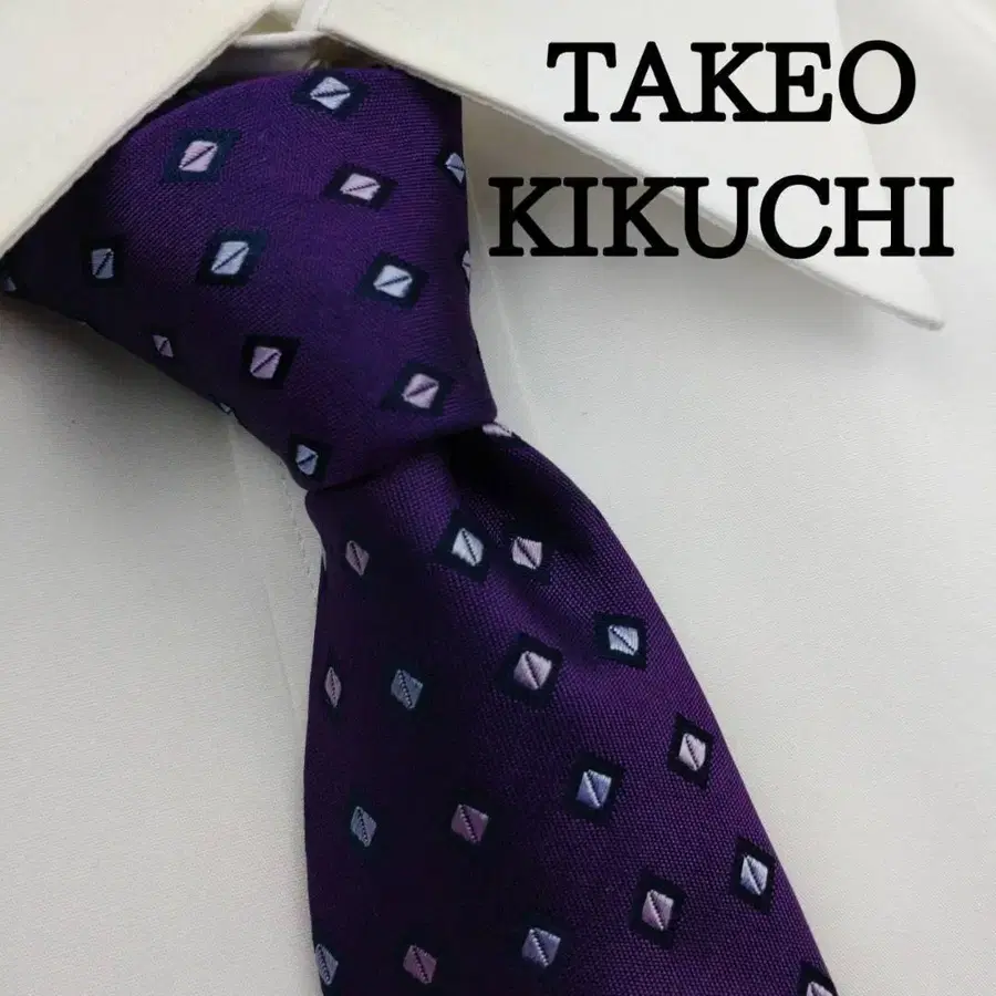 다케오 키쿠치 고급 실크 넥타이 도트 무늬 퍼플