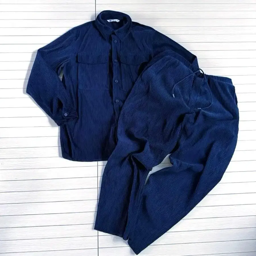 ZARA 네이비 스트라이프 셔츠 팬츠 세트 M XL