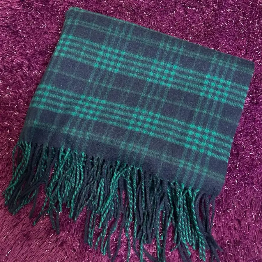 [새상품] 쿠미교쿠 대형 체크 스톨 울 100% 그린