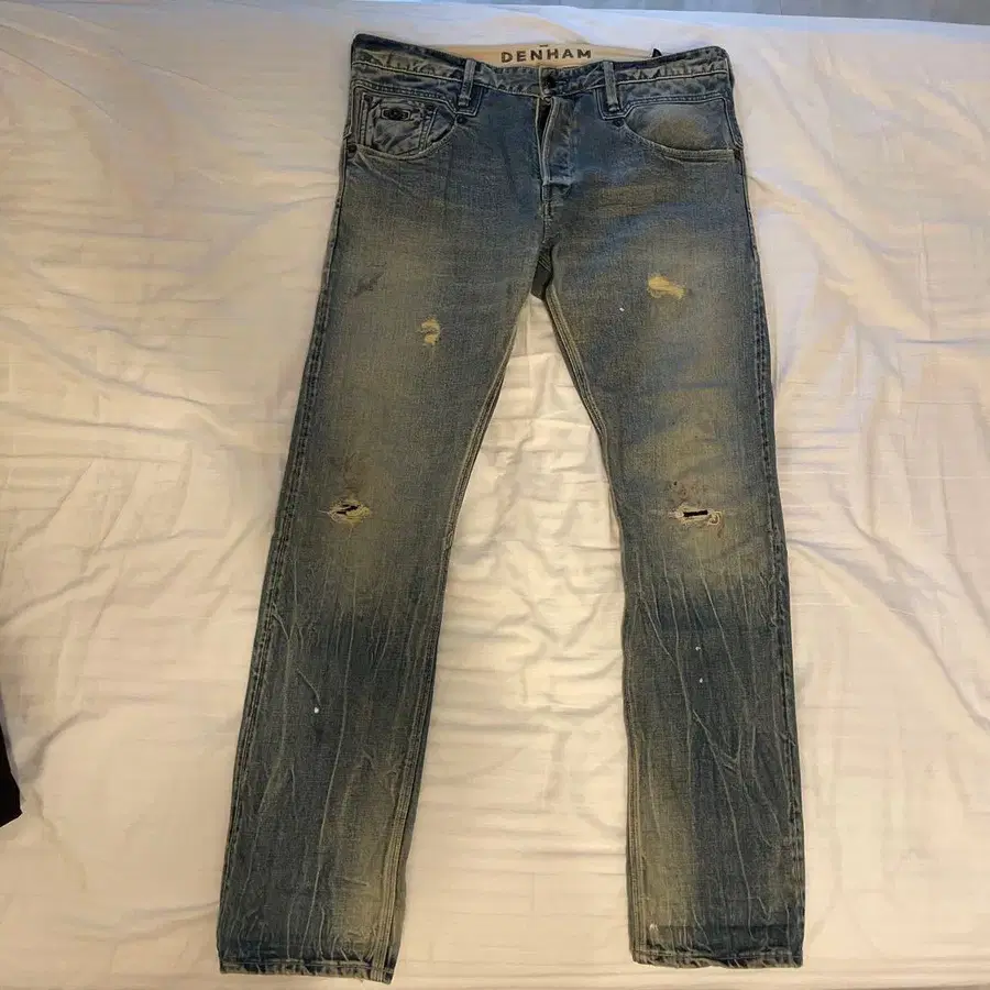 DENHAM 덴함 데미지 가공 라이트 블루 청바지 W33