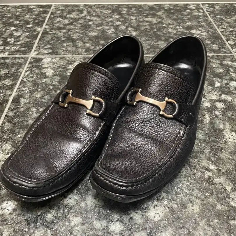 Ferragamo 블랙 가죽 로퍼 금장 장식 포함
