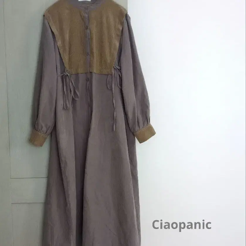 코듀로이 스웨이드 절개 긴팔 원피스 Ciaopanic 롱