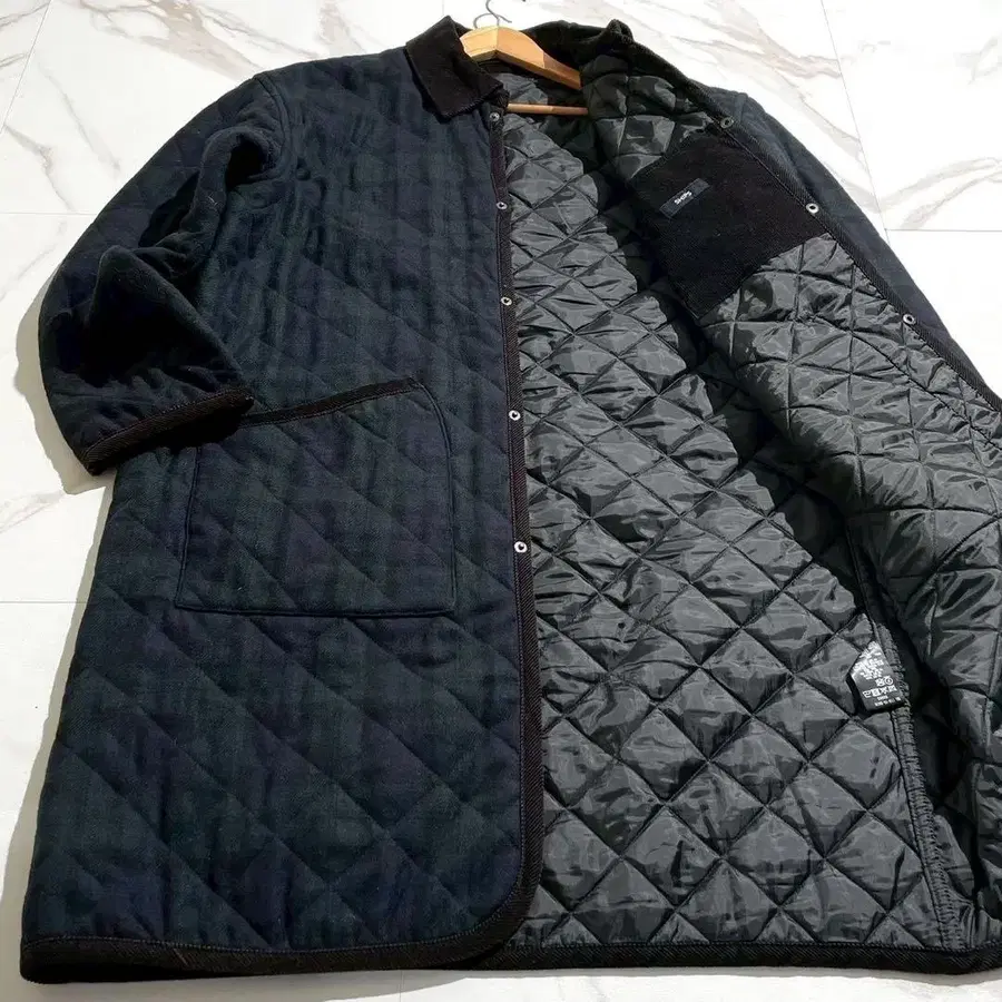[ 새상품급 ] SHIPS 퀼팅 롱 코트 타탄 체크 그린 네이비 L