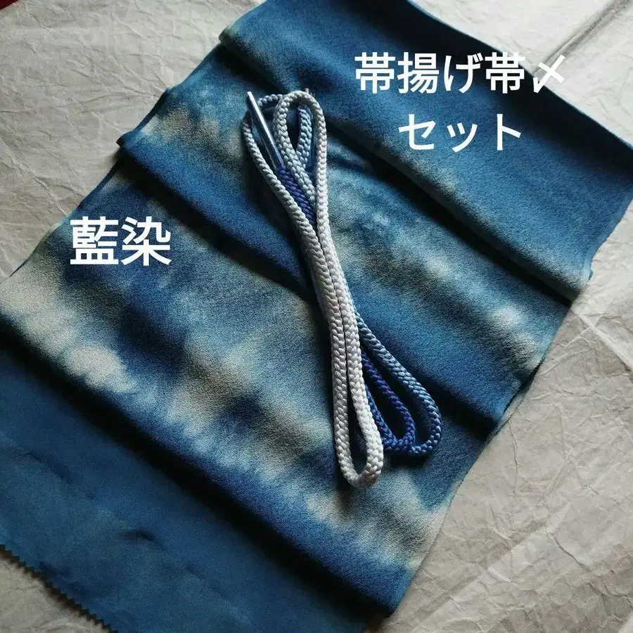 순수 실크 네이비 나염 오비 장식 천 & 오비 끈 세트