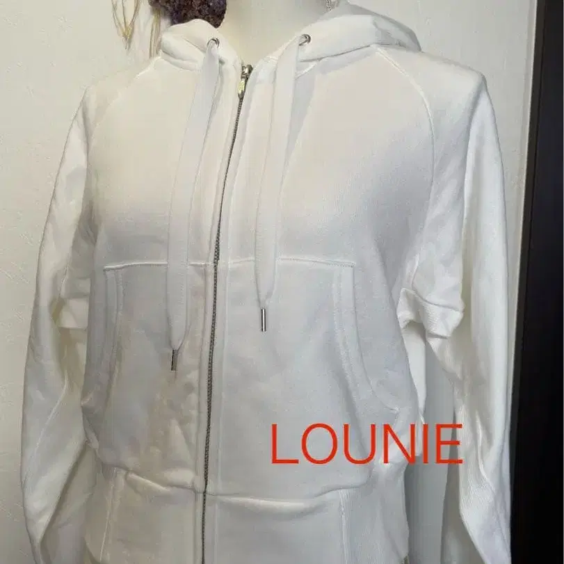 LOUNIE 더블 지퍼 화이트 후드티 택 포함 미사용품