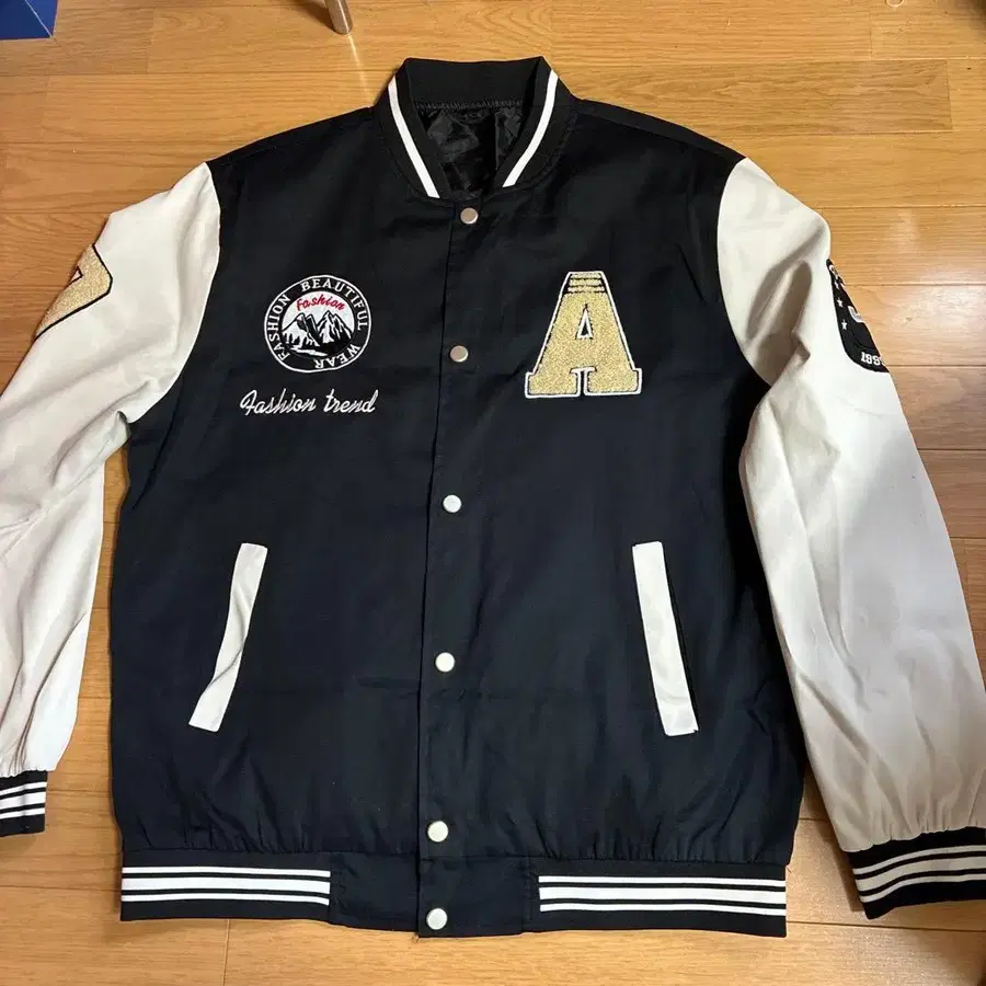 블랙 컬러 바시티 자켓 L 사이즈