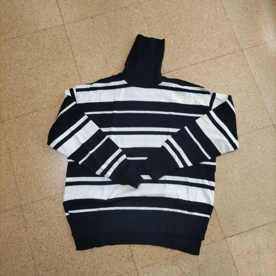 블랙과 화이트 스트라이프 터틀넥 스웨터 새상품