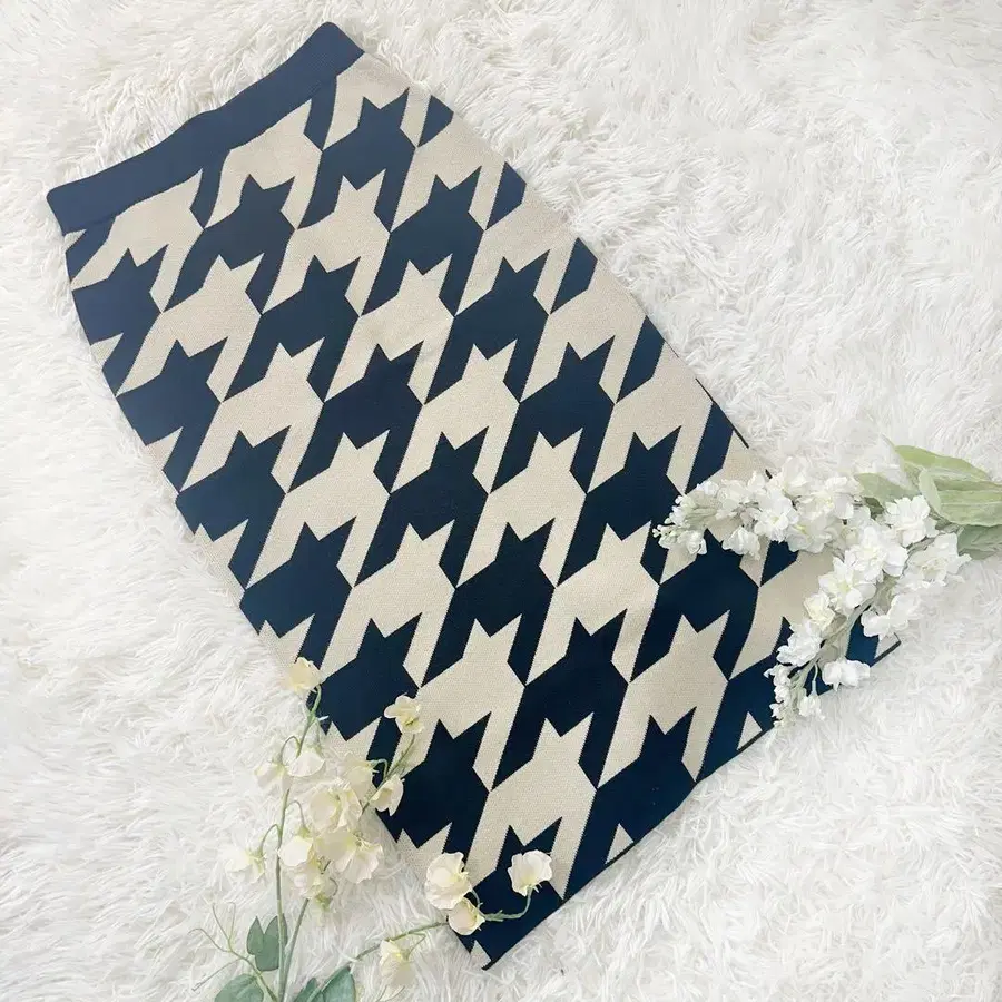 새상품 FENNEL 페넬 롱 스커트 하운드투스 패턴 베이지 9호