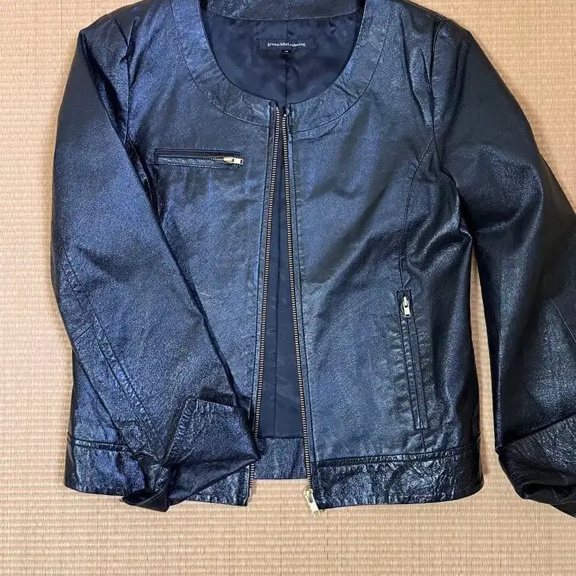 부드러운 돈피에 은은한 광택 가공이 되어 있습니다. 골드 컬러 지퍼 포켓이 있어 캐주얼한 스타일에 최적입니다.