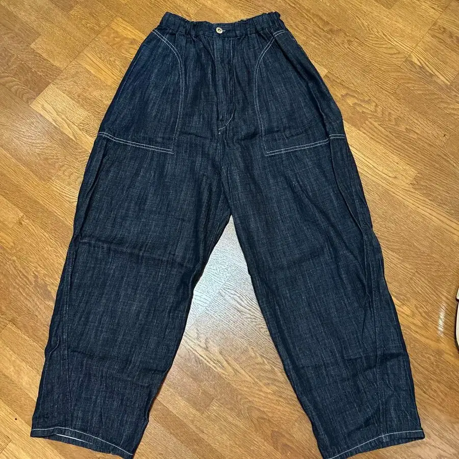 새상품급 Omekashi 드로스트 컬러 데님 스트레이트 와이드 루즈핏