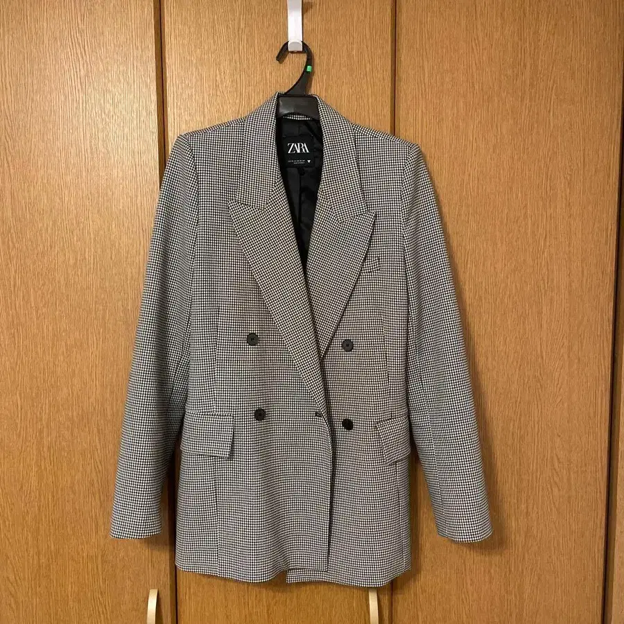 ZARA 체크 무늬 더블 브레스트 자켓 XS