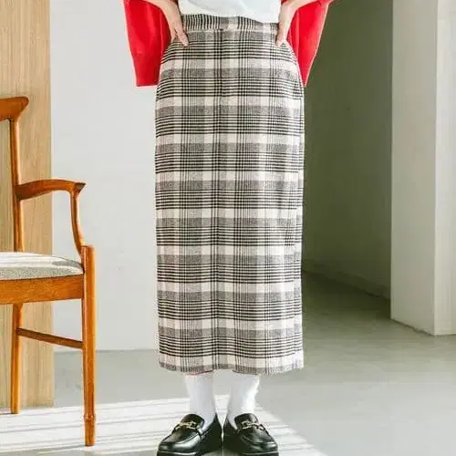 오늘만 가격 인하 laveange 기모 체크 타이트 스커트