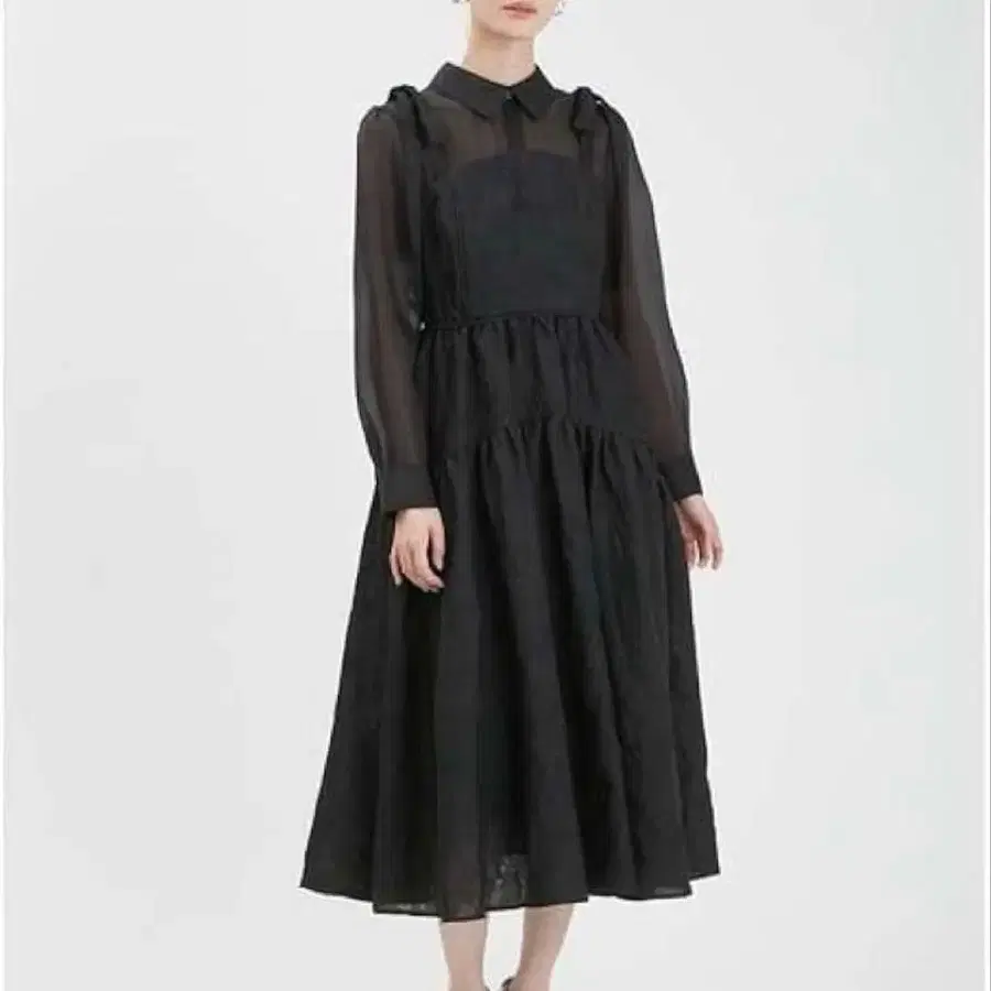 퍼프 슬리브 라메 자카드 콤비 드레스