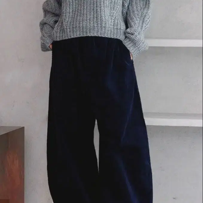 fashiru 네이비 코듀로이 와이드 팬츠 프리 사이즈