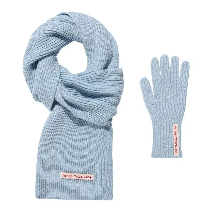 새상품 ames worldwide 머플러 스톨 장갑 세트 라이트 블루