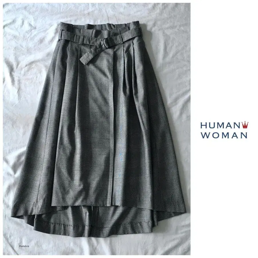 휴먼 우먼 [세탁 가능] 글렌체크 미모레 기장 턱 롱 스커트